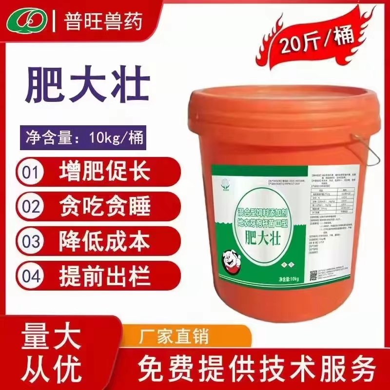 肥大壮是一款专为肥猪研发的一款微生态绿色健康催肥产品1、促生长防腹泻,防止猪群慢性中毒,粪便发黑的情况、开胃采食,促生长,吃的多拉的少,**饲料转化率,节省饲喂成本。咨询:15538392344 每100斤料......[详情]