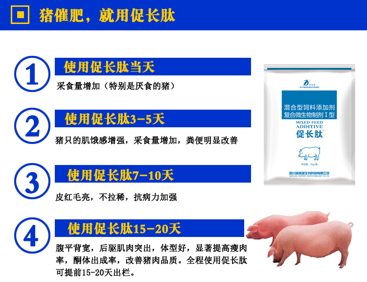 促长肽”是今牧原品牌在原【肥猪散】基础上升级新品,用于生长育肥猪促生长和**猪只免疫力和抗病力,采用微生态活菌+氨基酸维生素+消化酶等原料组成。促长肽融合了近年来促生长、激发肥猪生长潜能、**猪只抗病力等领域先......[详情]