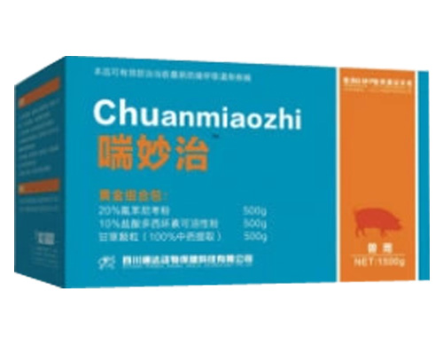 喘妙治|氟苯尼考 多西环素 甘草颗粒产品分类: 咳、喘等呼吸道病特效药**解决猪呼吸道疾病综合征的治疗难题。猪传染性胸膜肺炎、猪链球菌、副猪、支原体肺炎(猪喘气病)等呼吸道疾病。**缓解症状,**病原菌。喘妙治......[详情]