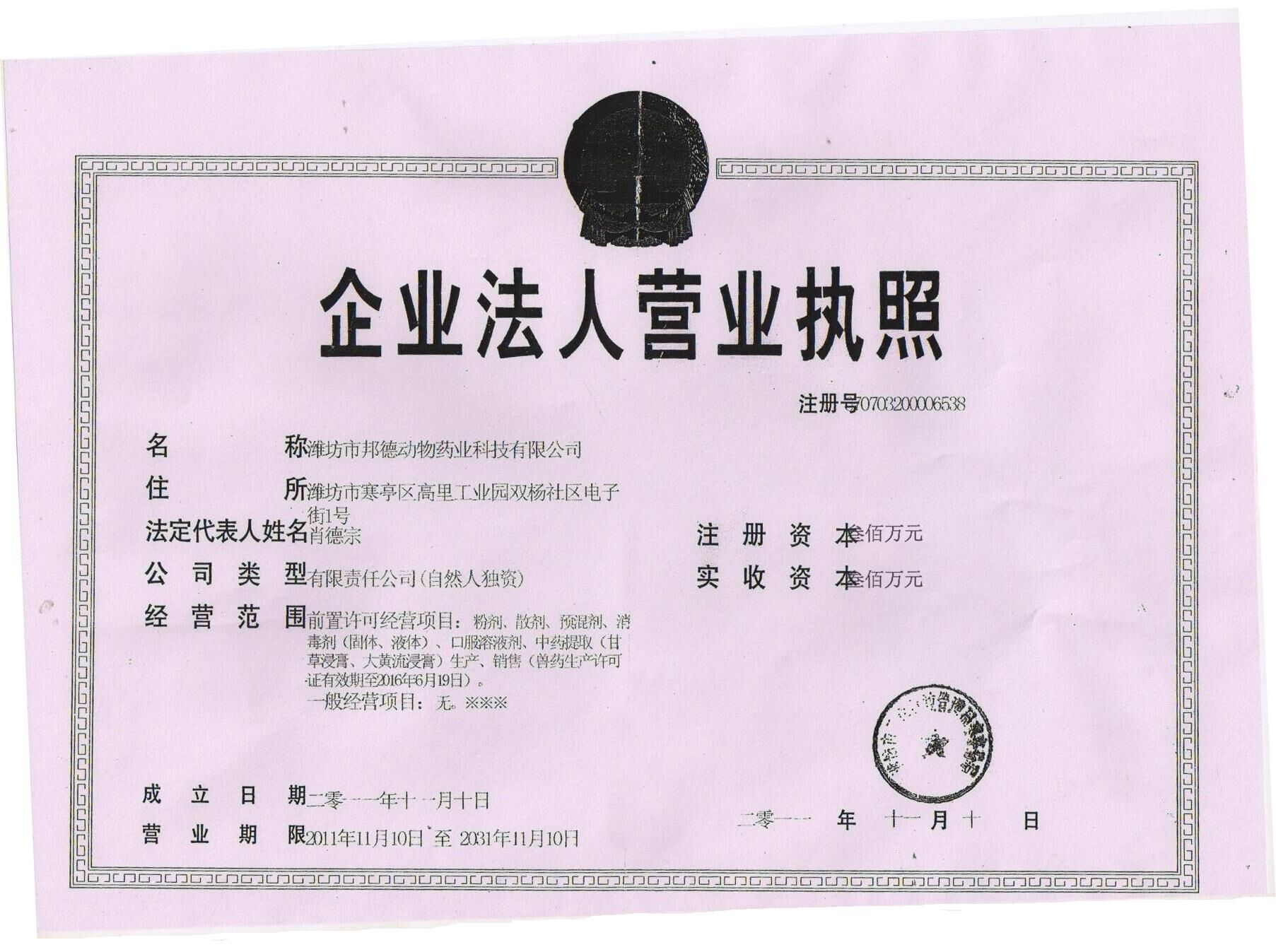 潍坊市邦德动物药业科技有限公司