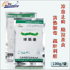 穿心莲250g、马齿苋500g、山楂250g、白头翁250g、旱莲草250g,煎水去渣。分3次拌饲料内服,连服3~4天(可供1000只鸡1天的用量)。