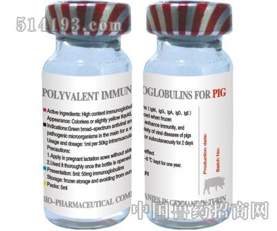 主要成分:高含量的浓缩免疫球蛋白(lgM、lgG、lg