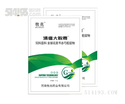 清热解毒、泻火通便、凉血解郁,对鸡、猪、牛、羊等畜禽多种病毒性和细菌性混合染病引起的热毒发斑、无名高热,温热下痢等症状均有特效