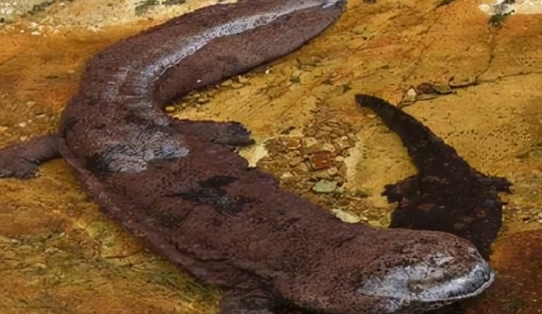 中国大鲵体长可达1.8米,体重超过100公斤。